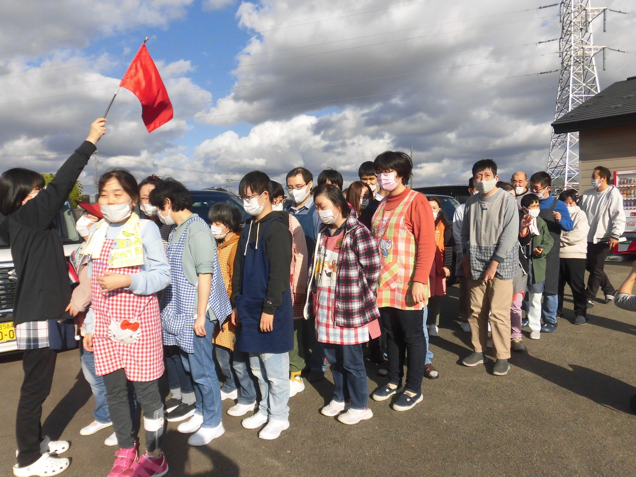 地震を想定して避難訓練をしました。おはしもを守りながら避難できました!